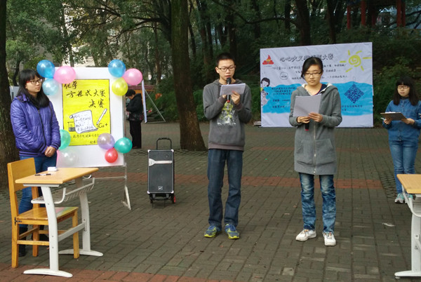 新闻中心消息 记者 符依菡 蔡振华14日上午,由共青团华中师范大学化学学院主办的第七届化学周系列活动之化学方程式大赛决赛在东区小树林成功举办。“吾等前方,绝无敌手”队以总分第一获得本次方程式大赛的一等奖,而二等奖和三等奖则分别由“试试看”队和“201415”队获得。