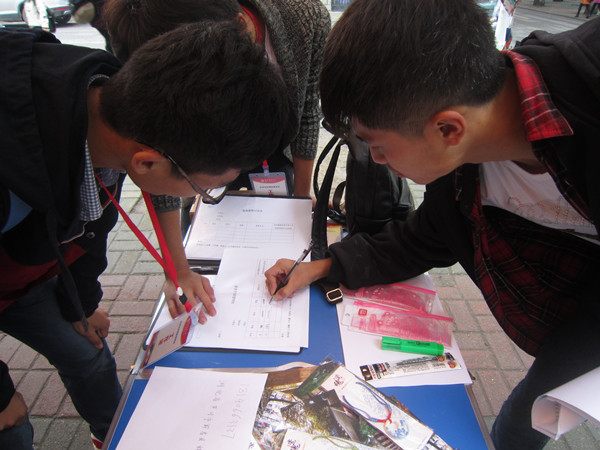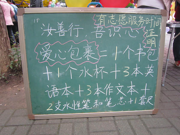 据了解,每个包裹中包含有一个书包,一个水杯,三本英语本,三本作文本两支水性笔和笔芯以及一套尺子。这些基本的学习用品,正是山区孩子所缺少的。活动中,同学们可以用支付宝,也可现金支付认领包裹的费用。现场,组队进行捐赠是大部分人的选择。捐献完成后,有精美的明信片供大家选择留念。