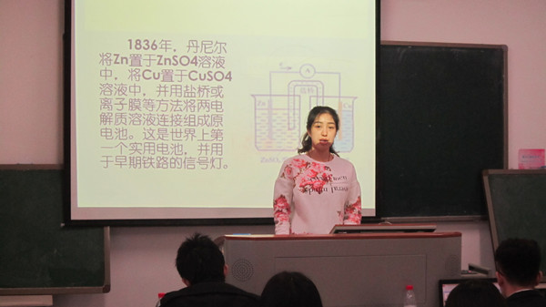 经过初赛的角逐,共有10位选手成功进入化学学院决赛。比赛中,每位参赛选手进行了限时10分钟的微课试讲。他们分别选取了:电解池、导电性、有机化合物、化学反应速率和水的电离等高中化学知识为主题。选手们运用现代信息技术手段进行教学设计并以规范的板书设计辅助教学,采取提问和抽同学在黑板上解题等方式模仿课堂教学情景。除此之外,选手们在讲课过程中还联系生活实际,用生活中的事物来吸引同学们的注意力。