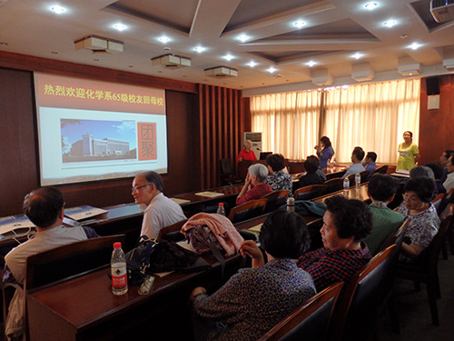 新闻中心消息 通讯员 张艳 10月22日上午十点,化学学院65级校友时隔五十年于逸夫化学楼五楼报告厅重新相聚。见面会由校友卿湘华主持,化学学院院长肖文精、党委书记杨军,党委副书记范重庆出席了本次会议。