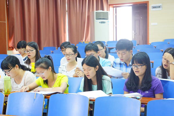 藉抗战胜利70周年之际,团委组织部在接下来的时间进行了红歌接龙和红歌竞猜两个板块。大家分组学习、演唱了《游击队之歌》、《保卫黄河》等经典红色歌曲。各班团支书从一位组织者转变为参与者的角色,需要放声歌唱,刚开始都有点不适应,但随着活动的推进,大家也都褪去羞涩,投入其中。随后,大家在博雅广场进行了抗战知识小问答环节,并互相之间交流了自己对举办团日活动的经验,现场气氛热烈。