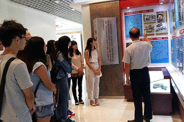 接下来,同学们随张叔叔参观了老战士报告团荣誉厅。首先看的是“群星荟萃”——报告团成员的事迹墙。张叔叔耐心地给同学们讲解报告团中每一个成员的英勇事迹:以传播党的创新理论为己任的独眼英雄张绪老团长、带着妹妹参加长征的杨春晖老同志、钻研刻苦理论功底强的袁升科老同志、在抗美援朝中被敌军击落2次却越战越勇的郑长华老同志、克服海拔障碍开辟“拉萨航线”的韩琳老同志……但当说到最后一个成员的时候,张叔叔却笑称:“最后一个,就不介绍了吧!”仔细一看,原来他便是最后一个成员,而仔细看了介绍文字才发现,他是张绪老团长的儿子。“张叔叔在介绍张老先生已经去世时的云淡风轻,想必那里面一定有着儿子对老父亲不溢于言表的思念。” 王玥同学回忆道。
