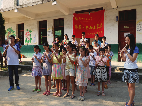 由支教队员余佳伟和徐超然指导的竖笛队带来的《小星星》和《欢乐颂》让观众眼前一亮,一个个美妙的音符从孩子们的嘴里吐出来,竖笛队之外的孩子和家长们都跟随着笛声一起打节拍。余佳伟和徐超然的用竹笛合奏的《星月神话》也是立刻把大家带入了音乐的世界。诗歌朗诵《青春中国》等充分展现了当代青年的青春活力,将汇演推向了高潮。
