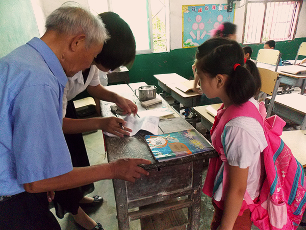 这是一所特殊的学校。教学质量上,这里是蕲春县中学“香饽饽”的生源地,成绩优秀的学生不在少数。但从校长口中得知,这里的学生百分之八十都是留守儿童,由于假期期间学校要求家人负责每天的接送签字,很多年迈的老人一瘸一拐地将孩子们送到教室,站在窗口凝视着自己的孩子张口读书后才慢慢地迈动着步子出校门,下坡,上坡。虽然是留守儿童,但是当四年级语文课上,老师问道最疼爱关心自己的人是谁时,之前很多沉默的孩子们也都开口齐声回答道:“父母!”,简短有力的词语,渴望拥抱爱的心愿。就是这样一个特殊的学校,这样一群质朴的山里孩子。