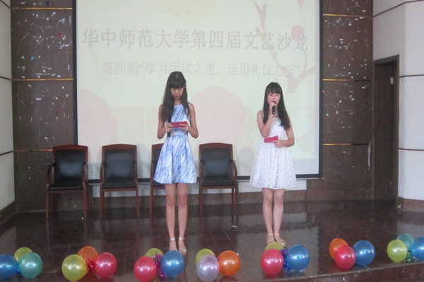 新闻中心消息 记者 陈子颖 陈嘉敏6日上午9点40分,华中师范大学第四届文艺沙龙第四期“学习面试之道,运用礼仪之巧”在九号楼一楼报告厅准时开始。本期文艺沙龙为华中师范大学化学学院和物理科学与技术学院共同承办。这一期旨在让同学们学习成为一位在未来的面试中,懂得礼仪之道,掌握基本面试技巧的面试者,学会如何展现个人的优势与魅力。