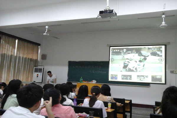 活动以班级同学展示自己在华师的照片并讲述自己与华师的故事的形式开展,通过照片展示、学生交谈等形式回顾大学三年的光阴。