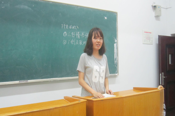 此外,林仪还就近期化学学院宣传工作中的两个重点活动——I创互联网创业实践大赛与“三行情书”比赛的工作进行了规划和安排。她表示希望在场的各年级宣传部长与各班宣传委员们能够协助院宣传中心把宣传工作落到实处,提高宣传工作的效率。