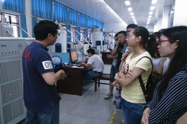 会议结束后,杨俊老师带领同学们参观了数物所的各个国内领头实验室并介绍了实验室的概况。对于大家从未接触过的核磁共振更是进行了科普式的讲解,同学们在倾听的同时也参与了热烈的讨论,提出了自己的疑问,气氛活跃。