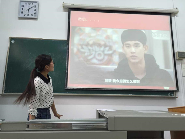 首先,由第一组的同学对免费师范生政策做了详细的解读,同学们听后纷纷表示受益匪浅,加深了对该政策的理解。接下来第二组、第三组的同学也依次展示了小组收集的资料。第四组的代表冯柳同学通过为同学们讲述她在社团为小学生讲课的经历,阐述了她对于教师职业的认识以及选择免师的理由。她说道:“你努力了,给孩子们讲了知识后,他们理解了,接受了,我想这就是老师的意义吧。”最后,第五组的同学为大家讲解了他们对于“免师是一个铁饭碗”的认识。他们以自身为例分析了以后就业可能会遇到的问题以及作为一名免师的优势。