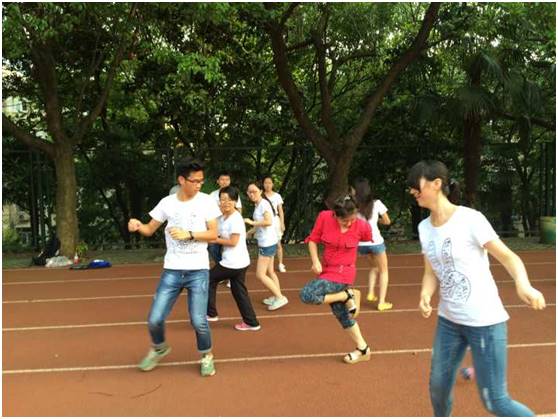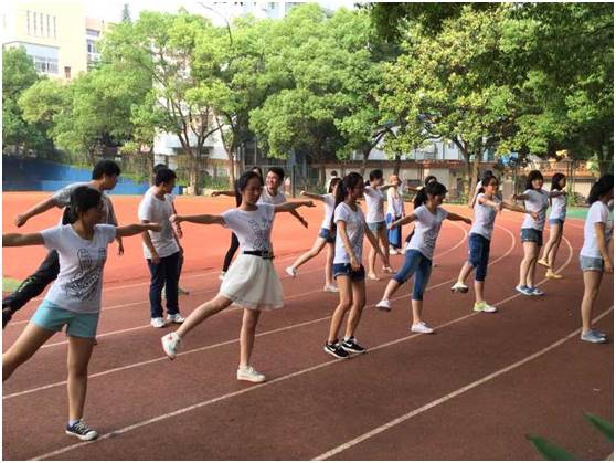 本次活动的主要内容为教同学们跳健身操。同学们排好了队伍之后,刘文静同学和熊裕迎同学便开始为大家详细讲解每一个动作。由于本次教授的是一套减肥健身操,所以活动一开始女生们就展现出了极大的热情。女生们笑着说:“既能健身又能减肥,当然要好好学了。”