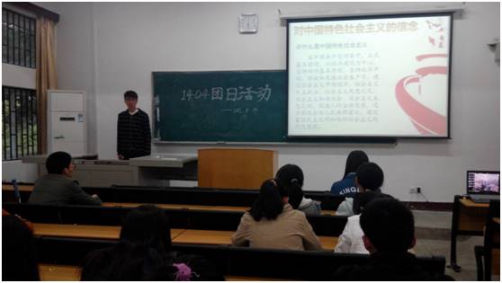 宣传中心消息 通讯员 徐盈 4月14日晚六点,化院1404班于七号教学楼7103教室举办了关于“学习宣传贯彻讲话精神‘四进四信’”的团日活动,参与活动的人员为1404班全体成员,活动由团支书胡又萍主持,整个团日活动持续了一个小时。