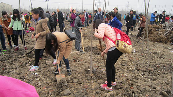 三月是“学习雷锋月”,在说到“学习雷锋”大家总是局限于做好人好事,恰逢三月十二日“植树节”,于是这次举行了植树的活动。植树恰恰是“雷锋精神”最好的体现,因为“雷锋精神”是“为人民服务”,而在环境日益恶化的今天,植树不仅仅是在为改变现今的环境献出一份力,更是为后代留下一片弥足珍贵的绿意。