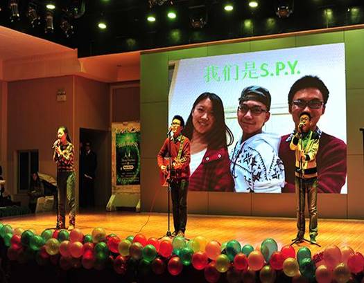 本次联欢会流行与古典兼收,温情与火热并举,形式多样,精彩纷呈。备受瞩目的SPY组合带来的歌曲《南山南》赢得了观众热烈的掌声,“吉他王子”梁亚杰深情的吉他弹奏,伴着12级董传旭与13级吴梓萱的深情对唱,征服了在场的所有观众。歌曲串烧《海阔天空》《lady marmalade》、《第一天》等轮番上场,或铿锵有力,或激情火热,或活泼动感,风格各异,变幻多姿。