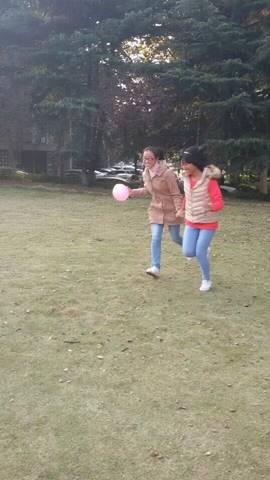 探讨完各种历史知识后,同学们迎来了充满趣味的第四环节——趣味游戏。这个环节分为“气球接力跑”和“兔子舞”两个部分。接力跑游戏中,同学们自由分成三个组,每组十人,各组人员确定好组名和口号后,以气球为道具,进行接力跑步,在最短时间内结束全程的组获胜。最后,由五名男生和五名女生组成的“成双成队”获胜,组员欢呼鼓掌。