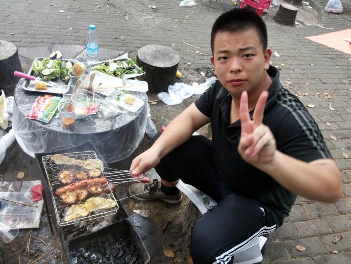 到达烧烤区之后,到达烧烤区之后,大家使用生活委员提前准备好的食品进行自助烧烤,相互品尝烤肉,其乐融融。