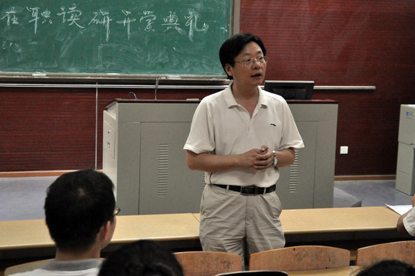 刘盛华向全体学生介绍了授课方式、学分、课程选择等方面的问题。他指出,在职读研期间的课程以远程网络学习为主,因此要珍惜并充分利用这20天左右的面授时间,多与导师沟通交流。他还希望大家能重视论文,选题时务必结合教学实际。