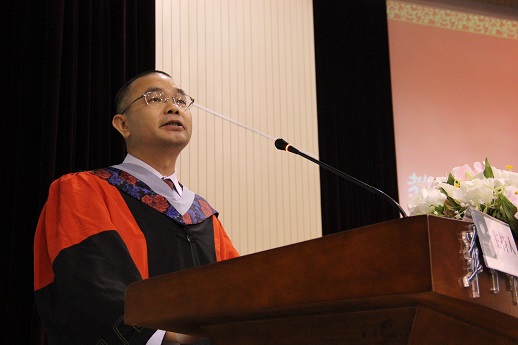 接着,教师代表吴安心教授致毕业赠语。吴教授借引自己的家训与毕业生们分享了宝贵的人生哲理。“莫惜力,善结缘;莫二过,跟对人;跟着精神自精神”是吴教授送给大家的三句箴言。在深深的祝福中,吴教授结束致辞,随后,本科生代表李玢洁、研究生代表刘玉超分别发言。在时间的一去不返间,在对大学生活的生动回忆和对母校的依依不舍里,两位同学代表2014届全体毕业生表达了作为一个华师人的自豪和对母校的依恋与祝福。