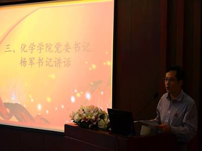 然后由化学学院党委书记杨军书记讲话,杨书记指出这次活动不仅是2011级学生在走向岗位前的全方面预演,也是对全院学生师范生技能的一次全方面检验。杨书记还激励同学们要知行统一,志存高远,树立远大理想,做未来的教育家。