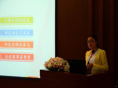 首先由活动的负责人代表2011级学科部部长石玉玲同学对“扬帆远航”系列活动进行总结。整个活动有以下4个亮点:主题鲜明,以赛促练锻技能;内容全面,师范特色引风采;气氛活跃,师范非师共参与;筹划精心,流程赛制获赞誉。