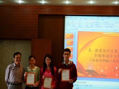 杨书记讲话后,嘉宾开始为表现优异的同学颁发证书并合影。其后由获奖学生代表牛诗蓓发表获奖感言。