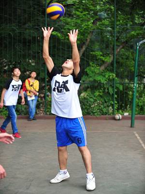 在随后的比赛过程中,队长莫敏时刻提醒队友们要稳住,不要慌,当队员犯规或因失误而失分时,他冷静地安慰大家要稳住,并宽和地说“没事没事”。于是,在整个比赛过程中化院队员们团结一致,严格遵守比赛规则,动作潇洒有力,扣球和拦网技术发挥得淋漓尽致。而与此相对应的是法学院队员们频频失误,屡屡地把球击到了边线和短线之外。这也为化院赢来了多次的发球权和主动权。最终,在随后的两局中化院均以25:16获胜。