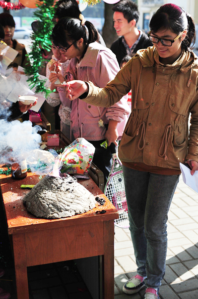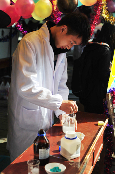 文学院13级章梦玮在做了几个趣味实验后,感叹道:“没想到如此简单的原理能有这样神奇的现象,希望这个活动能够越办越好,明年我还要来参加!”据悉,该活动得到了部分商家的支持,采取了积分抽奖换礼品的活动形式,增强了路人参与到活动中的热情,使得更多的人了解化学,在趣味中学到知识。