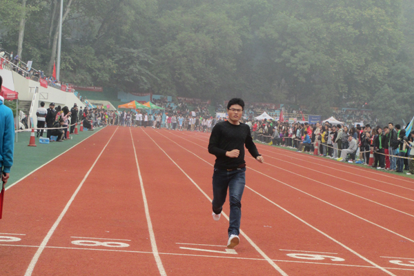 即使男子赛跑竞争压力很大,胡杰仍然挺进决赛。下午决赛时,化院的同学分散在跑道的边沿为他呐喊助威,在整个赛程中“胡杰加油、化院加油”的口号声此起彼伏。胡杰在起跑时稍微慢于其他选手,但是迅速调整状态,起身直追,最终取得小组第七名的优异成绩。
