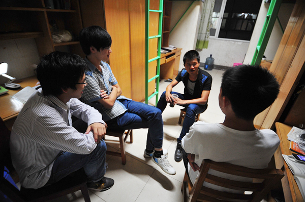 新闻中心消息 记者习晨光10月13日晚,11级与12级化学学院的学长学姐来到去到新生寝室,与他们交流经验。