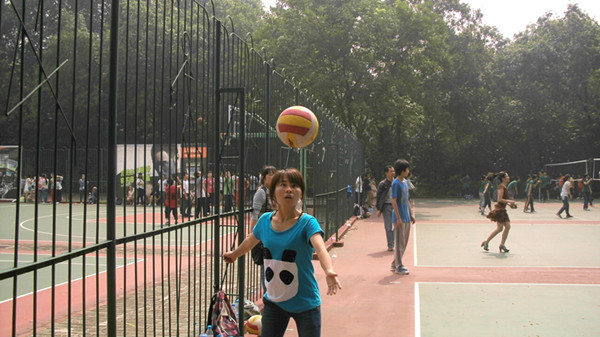 相比男子排球赛,在七号场地的女子组和数学与统计学学院的比赛打得比较温柔。双方队员都随进球而欢呼,随失误而失落。尽管观众不多,但也都乐在其中。最后,化学学院女排以0:3憾负数统学院,再次与四强擦肩而过。