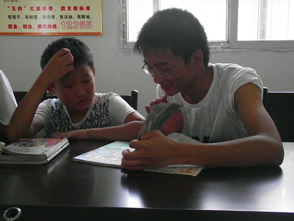 据悉,实践队自7月1日到周帮村就已经开始着手准备今天的支教活动了。在村委们的协助下,经过3天的宣传和招生,今天一大早,周帮村小学门口就已经聚集了一大批的学生及家长。据统计,此次来报到得学生了涵盖了从小学到高中的各个年级,人数共有20余人。由于学生年龄和学习状况参差不齐,并且人数与实践队员人数相当,实践队根据实际情况采取“教学一对一”的教学模式,因材施教。