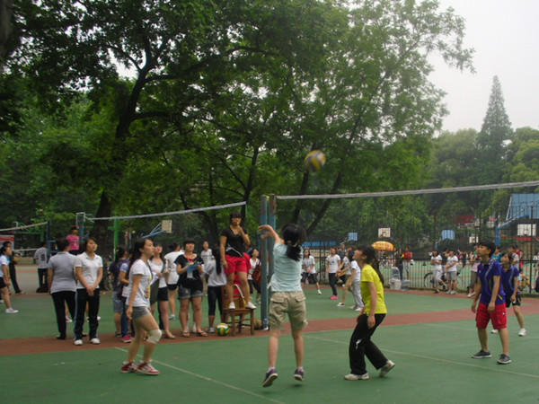 与此同时,我院的巾帼女队也在拼搏奋斗。由政法学院发第一个球,我院经过一个巧妙的吊球,先的一球,赢得一个开门红。接下来,双方队员变开始了龙争虎斗。一个个精彩的传球,吊球,扣球,双方队员都各自发挥出了个人水平和团队配合。比分一直咬的很紧,双方僵持不下。终于,政法学院率先达到25分,而我院则以3分之差痛失第一局。