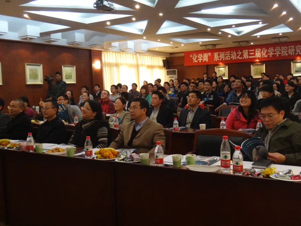 新闻中心消息 记者 张曦11月25日,我院第三届研究生学术年会在逸夫化学楼五楼学术报告厅召开。武汉大学化学与分子科学学院杨楚罗教授应邀出席会议并发表了“有机电致发光材料的设计合成及性能研究”为主题的学术报告,我院党政领导、教授和研究生参加了此次年会。