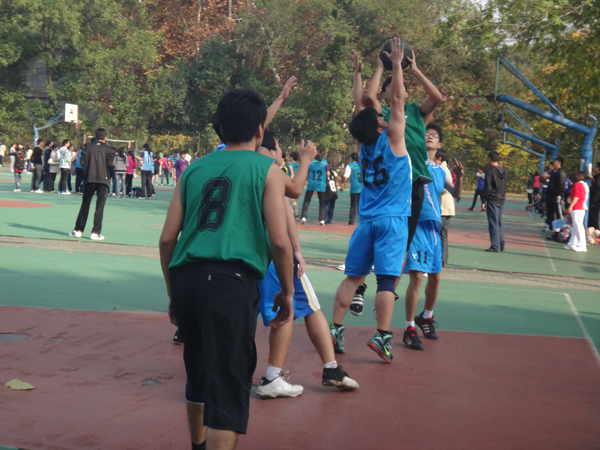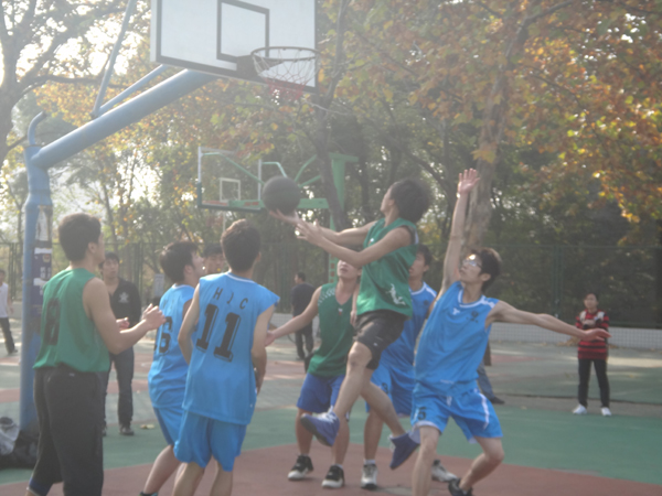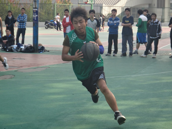 下半场开始,我院队员逐渐把握住进球节奏,利用管院的失误,接连得分。8号农炫翔光速般的上篮和14号独霸篮下的抢板是我院男篮将比分差拉大的法宝,44号雪顿次仁出其不意的抢球和快攻总能赢得场边观众的阵阵欢呼。而管院队员也毫不逊色,换人后还投进了一个三分球,力图将比分缩小。面对对手的反扑,我院8号农炫翔多个精彩上篮稳定了局面,并保持住领先优势。28比21,我院依然领先。
