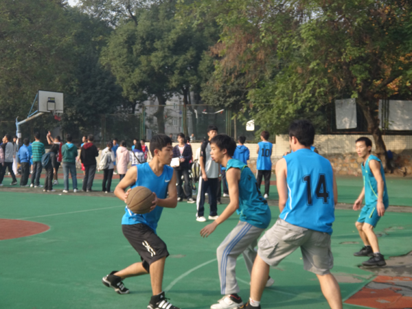 一声哨响,比赛正式开始,我院首先获得球权,然而天不遂“化愿”,头球未果,城环抢得球权,且投得一球。在第一节的激烈而又艰苦的较量中,城环奋力进攻,异常凶猛,我院不甘示弱,加紧防守。在我院男儿的努力下,韦海涛一人持球,中锋单挡,切入篮下,投得一球,此后我院雄风便变得一发不可收拾,上半场比分24:22,化院险居上风。