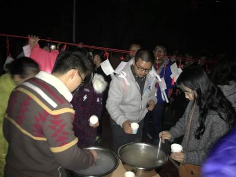 经过紧张的筹备,活动于19:00正式开始。首先大家依次领取了汤圆。之后团总支刘诗雨发表了关于此次活动的介绍,经过主持人的简短开场及活动流程的简介,灯谜大会正式开始了。第一个环节便是抢答,虽然一开始大家都有一些紧张,但后来气氛便渐渐地活跃起来,同学们争先恐后的抢答。