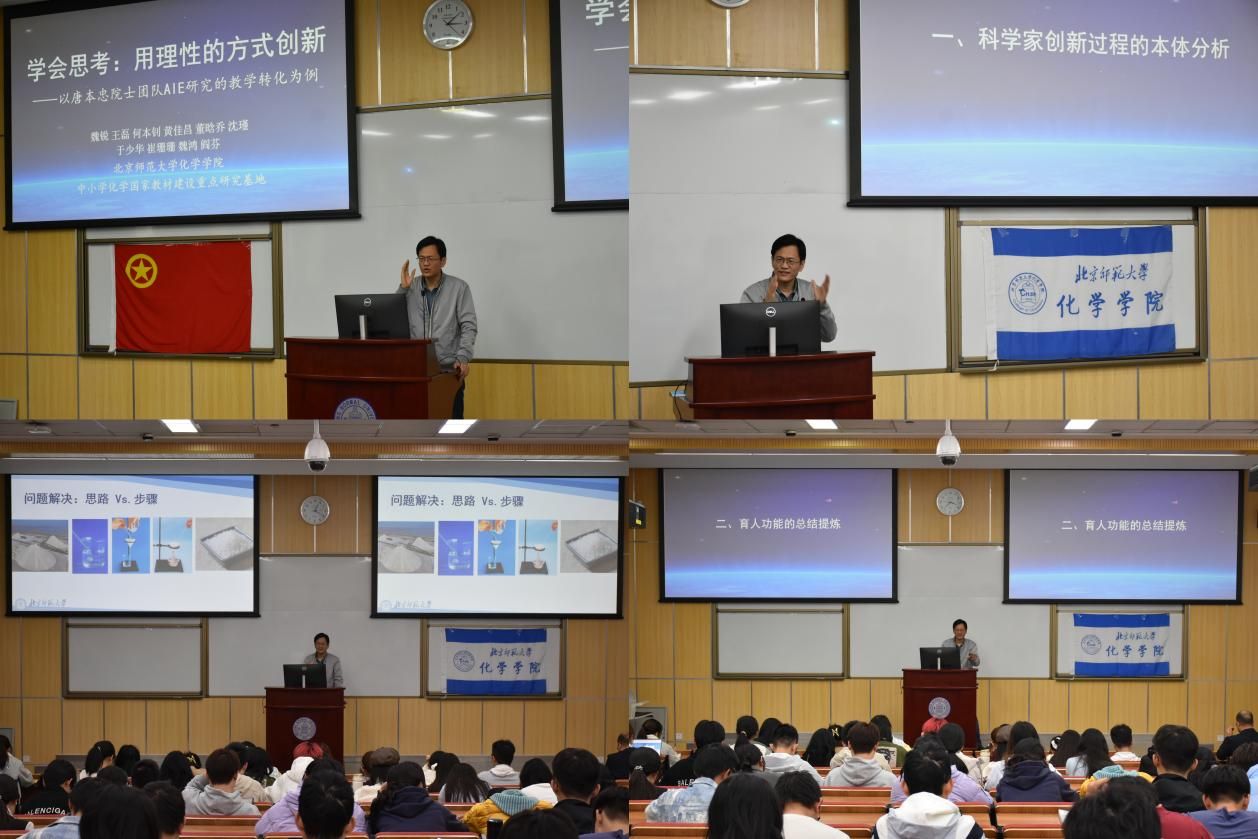 之后,魏锐还指出,要推进新时代中学生“问题解决思路”构建,必须培养学生有序分析及结构化的意识与能力,帮助学生将问题解决思路有效外显为步骤。他强调基于问题本体的思维方法构建是培养当代新型人才的迫切需要、基于教育家精神的师德师风建设是培养当代卓越教师的必由途径。讲座结束后,学生表示,魏教授的讲座不仅深入浅出解读中国在自然科学领域突破,也为大家在成为卓越教师的方向上带来精神引领。