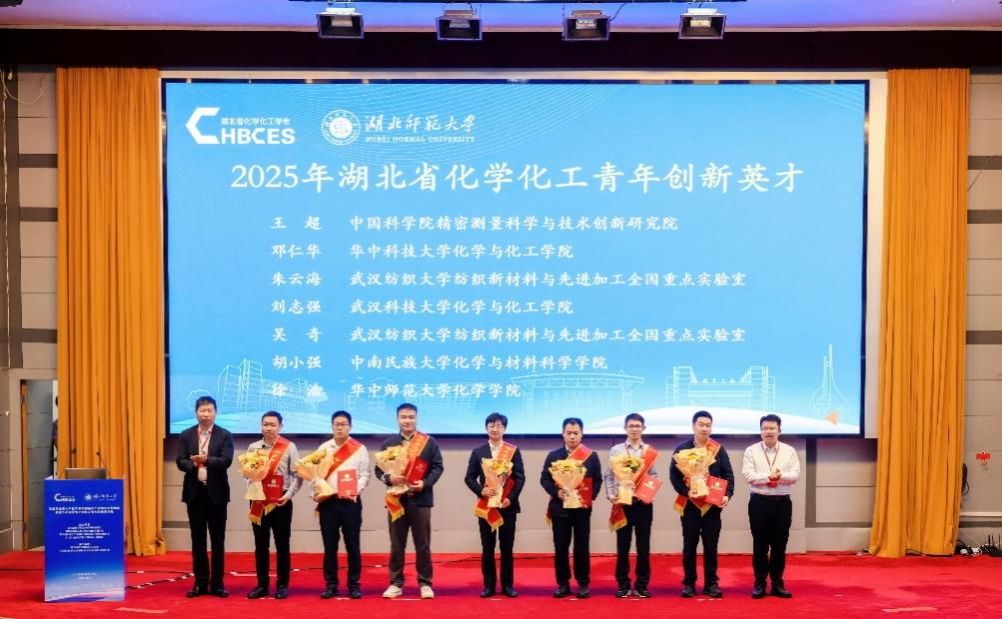 在开幕式上,2025 年度“湖北省化学化工青年创新英才”颁奖仪式隆重举行。该奖项致力于激励青年科技工作者的创新热情,表彰在自主创新中表现突出的青年人才。本年度共有来自中国科学院精密测量科学与技术创新研究院、华中科技大学、华中师范大学等高校院所的7名青年科技工作者获此殊荣,其中,徐浩凭借卓越的科研贡献成功当选。