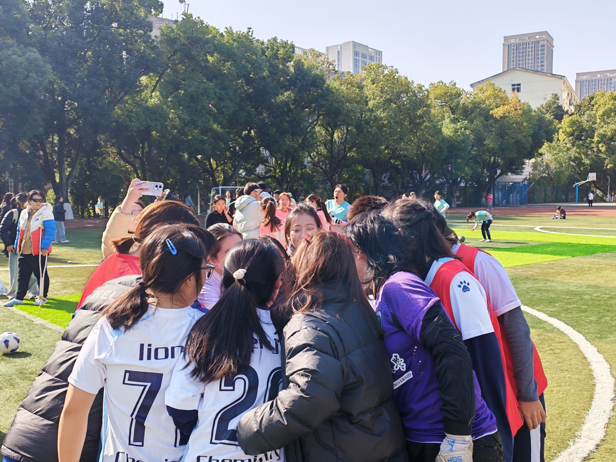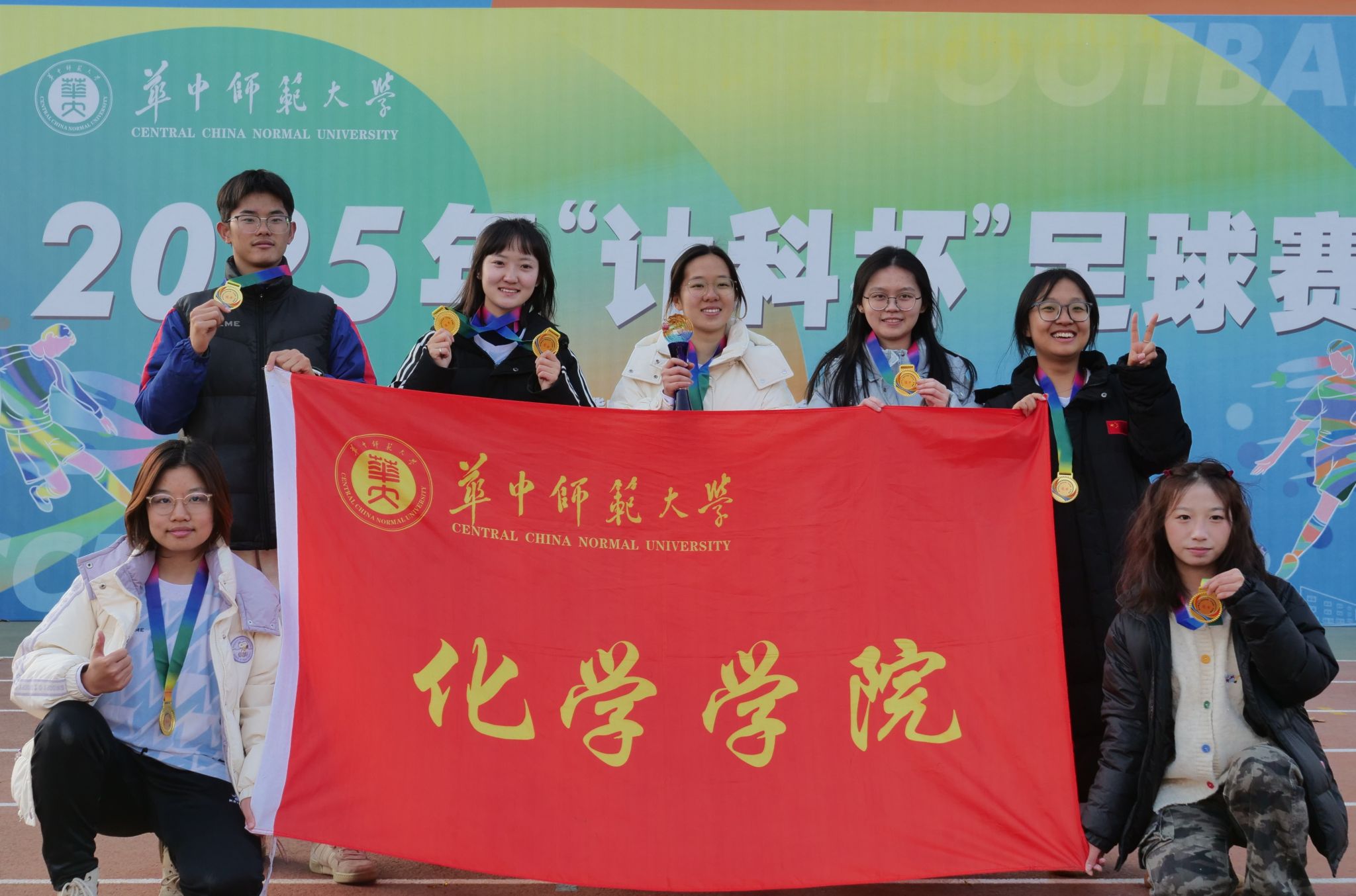 (通讯员 江静怡 宋馥郁 傅俊洁 付雅静)12月14日下午,由华中师范大学体育运动委员会、大学生体育(健康)教育中心主办,计算机学院承办的2025年学校“计科杯”女足决赛在佑铭体育场圆满收官。化学学院与新闻传播学院组成的联队女足,凭借66号球员陈雯轩的梅开二度,以2-1力克文学院和经济与工商管理学院联队,强势摘得本次比赛冠军!