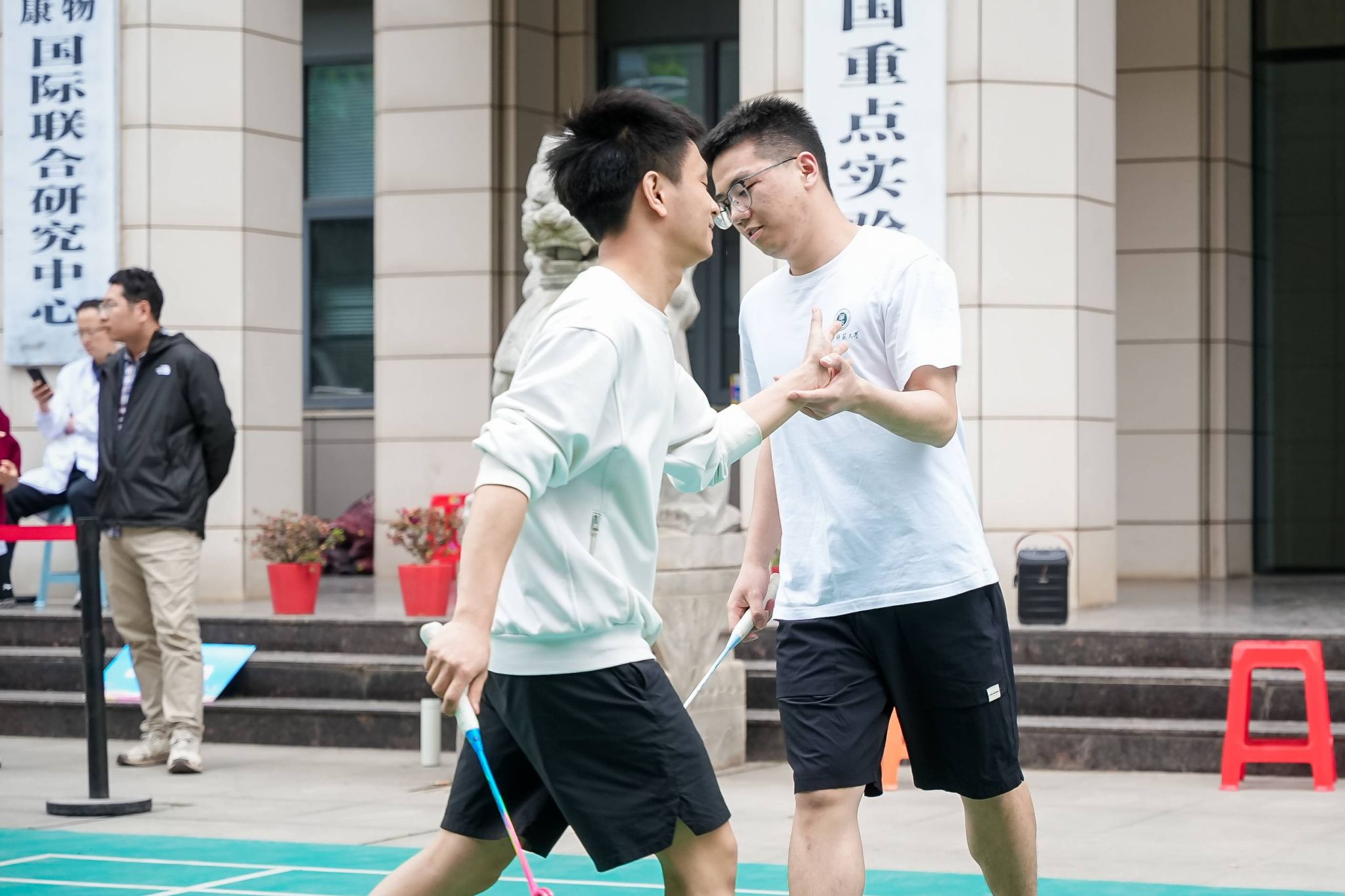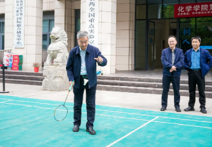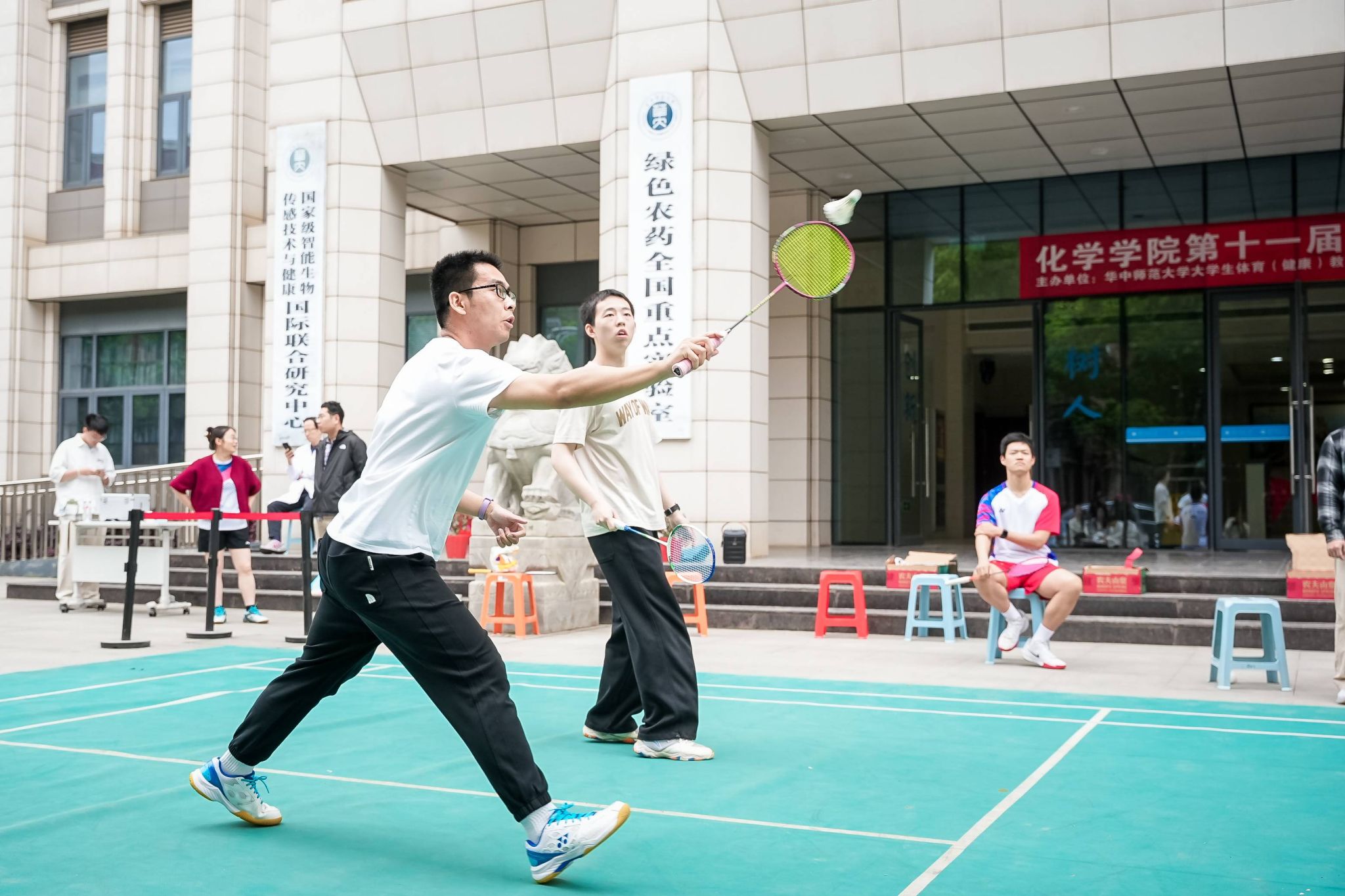 化启新程,羽动青春。为深入贯彻“健康第一”的教育理念,扎实推进校园体育文化建设,4月15日,华中师范大学化学学院第十一届“化羽杯”师生羽毛球联赛开幕式在化学学院广场隆重举行,这是第一次将赛事球场放在师生最熟悉最贴近的“家”——化学学院。现场氛围热烈,全院师生以球会友,共赴这场春日里的体育盛会!