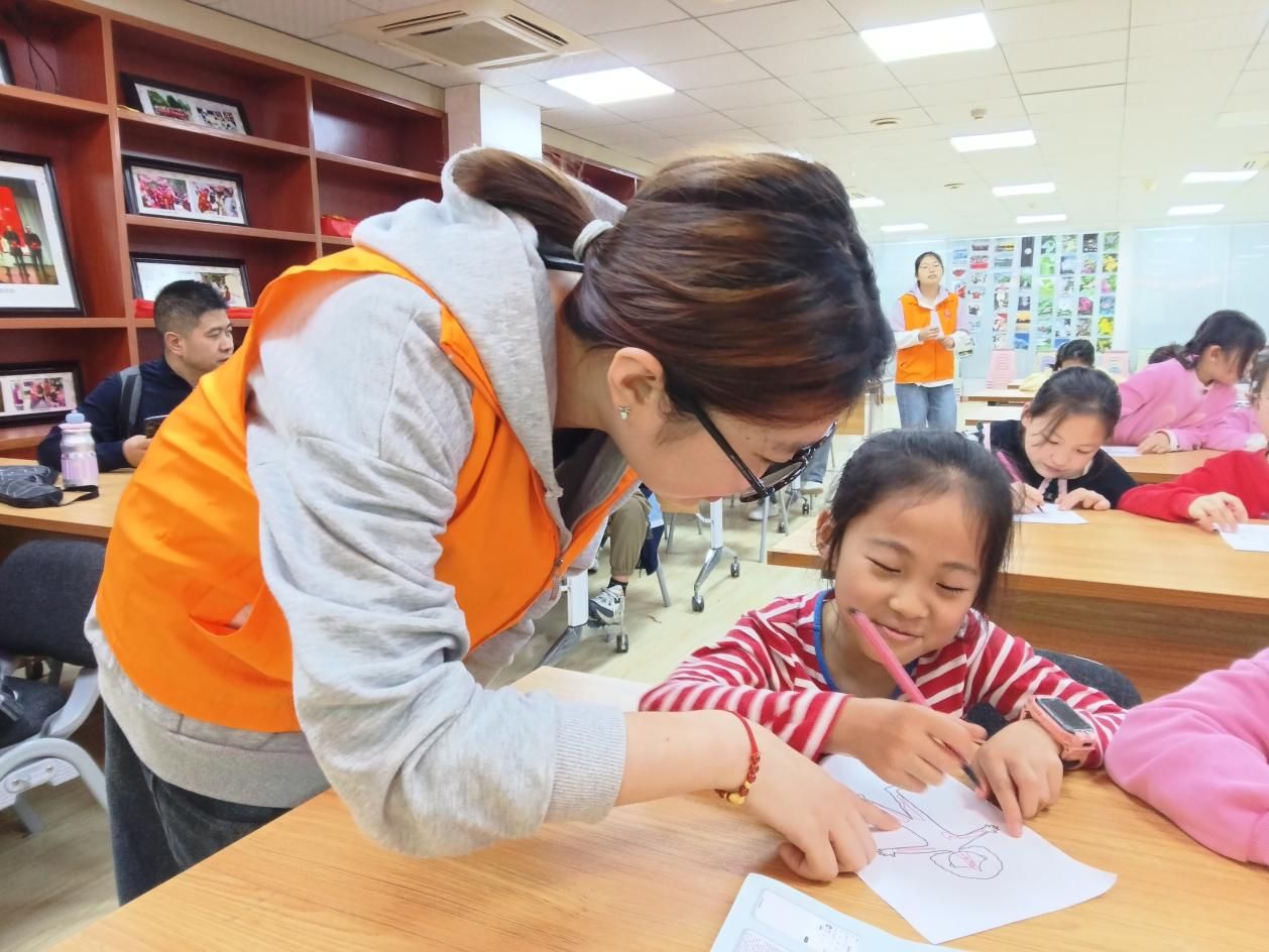 志愿者贾诗雨与小朋友互动