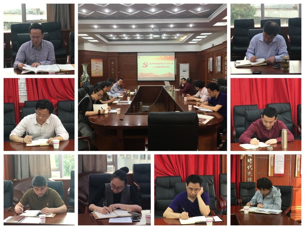 4月25日下午,化学学院党委中心组在逸夫化学楼H502室集中学习。本次会议由化学学院党委书记邱宝国主持。