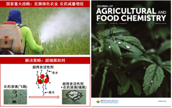 研究统计显示,在农药喷洒过程中,只有0.02%-3%能够铺展在疏水的作物叶面上,九成以上的农药流失到环境中,造成严重的生态污染和经济损失。当前,农药超铺展技术几乎完全被国外农药巨头垄断。因此,为突破欧美“卡脖子”技术壁垒,自主研发农药超铺展剂是我国绿色农药应用领域研究的重要挑战。