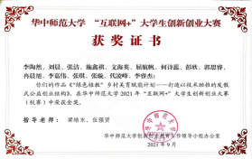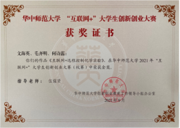 我院文海英、施鑫祺、何诗蕊等同学从大一开始就加入了柯尤吉团队,参加各类创新创业团队比赛,获得金奖银奖共十多个。其中,2021年伍老师指导或共同指导参加比赛获得奖项5项,分别是:2021年华中师范大学“互联网+”大学生创新创业-远程控制化学校赛金奖;第二届全国大学生化学实验创新设计大赛二等奖;第七届中国国际“互联网+”大学生创新创业大赛省赛银奖(奖状后期到达);2021年华中师范大学青年志愿服务公益创业赛银奖;2021年华中师范大学“互联网+”大学生创新创业-绿色植教校赛金奖。