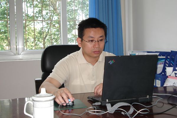 整洁的桌面上,一台电脑、一摞文件、一杯白开水,简简单单的工作环境。在这里他安静地做研究,和学生谈很久的心。